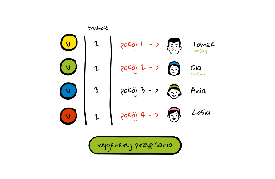 Cleany przypisze zadania pracownikomi opierając się na kryterium trudności pomieszczeń. Nasze rozwiązanie zadba o to, aby prace zostały sprawiedliwie rozdzielone pomiędzy sprzątających.