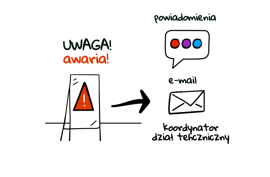 Każde zgłoszenie awarii dokonane przez pracownika jest automatycznie przesyłane do koordynatora oraz działu technicznego.